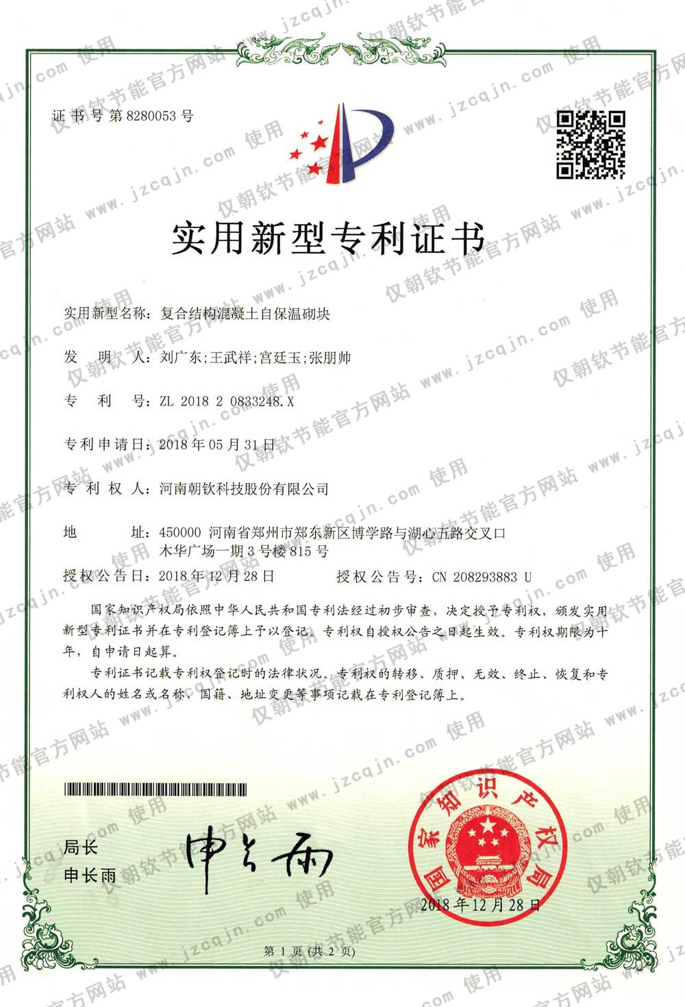 朝欽節(jié)能擁有數(shù)十項科研成果與專利,及河南省建設(shè)廳等機構(gòu)鑒定證書,并發(fā)布了數(shù)項企業(yè)標(biāo)準(zhǔn)。